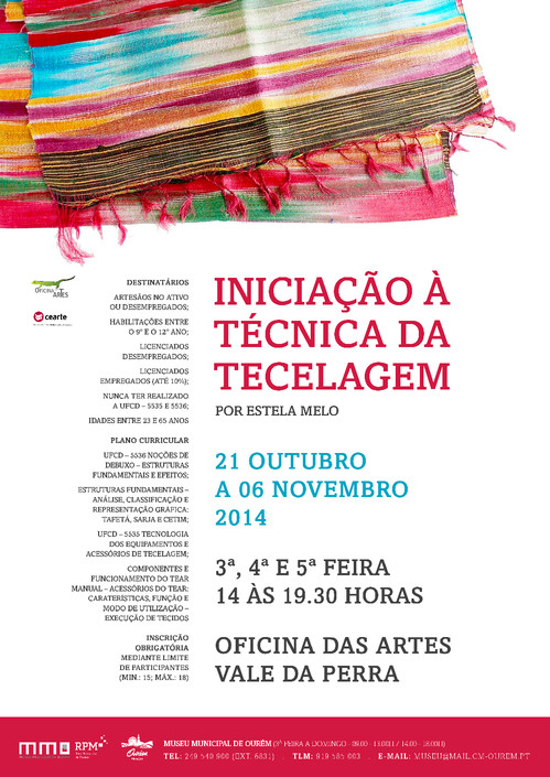 Ourém promove o curso de Iniciação à Técnica da TECELAGEM, a decorrer de 21 de outubro a 06 de Novembro, das 14h às 19h30, na Oficina das Artes em Vale da Perra – Ourém. Este curso é certificado pela CEARTE.