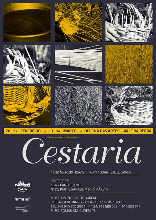 O Museu Municipal de Ourém leva a efeito o "Workshop de Cestaria" que irá decorrer nos dias 20 e 27 de fevereiro e nos dias 13 e 14 de março, das 18h30 às 20h30, na Oficina das Artes, no Vale da Perra.