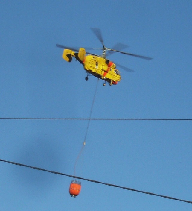 No terreno encontram-se várias corporações de bombeiros que combatem o incêndio com apoio de meios aéreos.