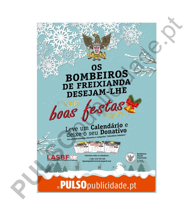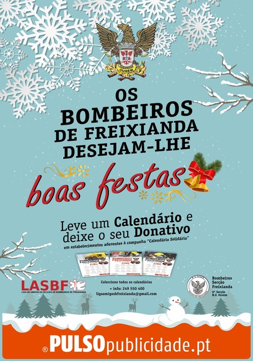 Tendo em vista desejar as boas festas á população da sua área de actuação e ao mesmo tempo angariar alguns donativos, a Liga de Amigos da Secção de Bombeiros de Freixianda promove a distribuição de calendários de parede durante todo o mês de Dezembro.