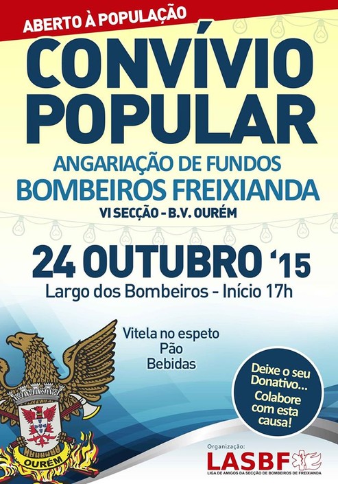 Com vista a angariação de fundos para os bombeiros locais, a Liga de Amigos da Secção de Bombeiros de Freixianda organiza no dia 24 de Outubro um Convívio Popular aberto a toda a população.