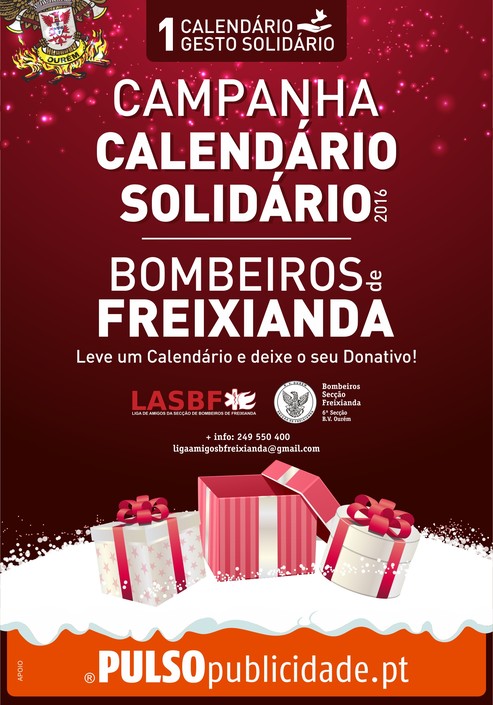 Na sequência do que foi feito no ano passado e tendo como objetivo desejar as boas festas á população da sua área de atuação e ao mesmo tempo angariar alguns donativos, a Liga de Amigos da Secção de Bombeiros de Freixianda promove a distribuição de calendários de parede e de bolso durante todo o mês de Dezembro.
