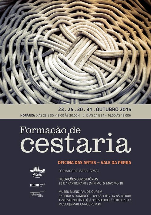 Formação de Cestaria a iniciar no 23 de outubro de 2015, às 18h00, na Oficina de Artes em Vale da Perra - Ourém.